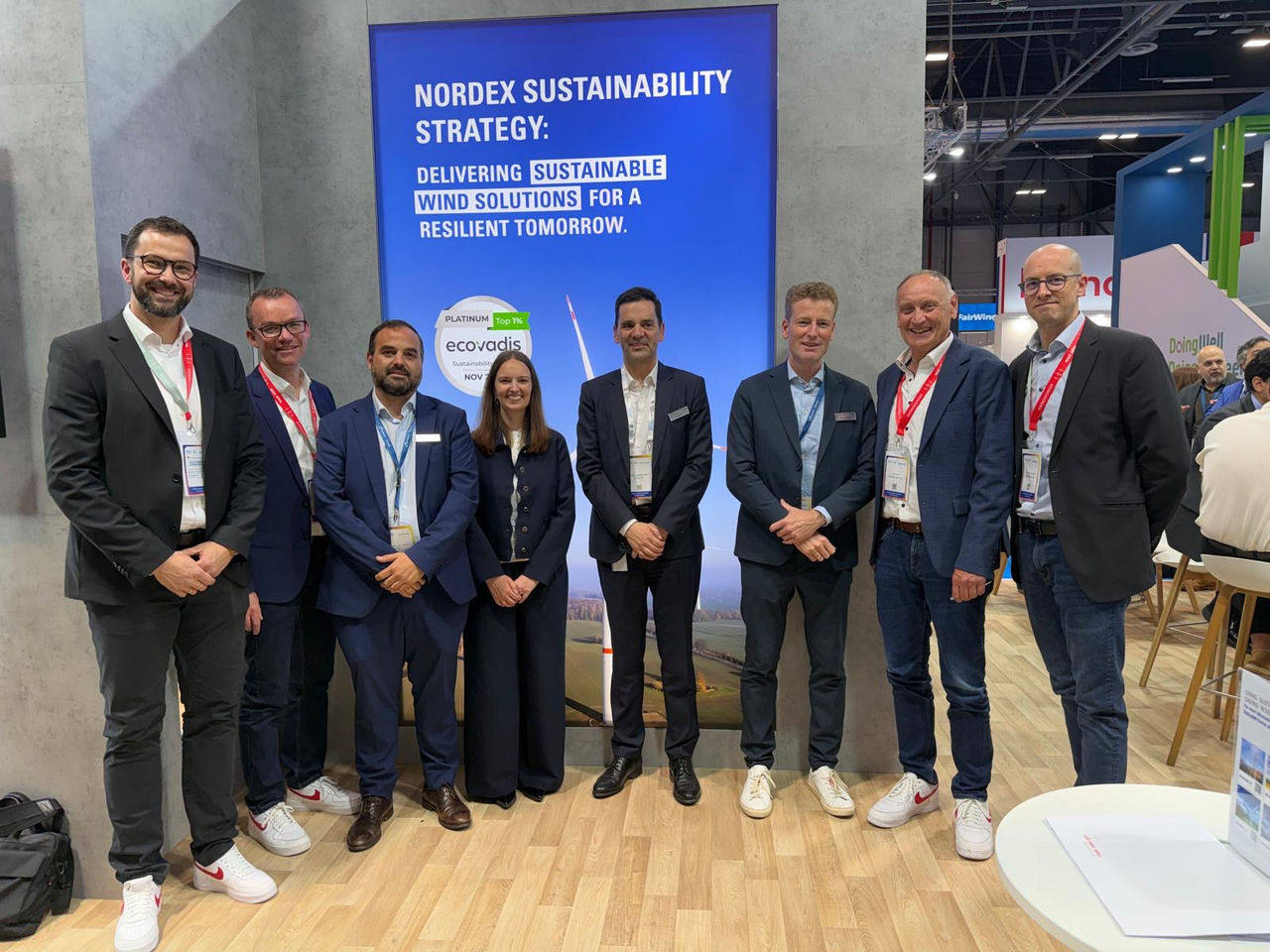 Bildunterschrift: Die Nordex Group und Max Bögl erweitern den bestehenden Vertrag um zusätzliches Auftragsvolumen – von links: Martin Hörteis (Max Bögl), Stefan Braun (Max Bögl), Roberto de Castro Arellano (Nordex), Nadine Schmelter (Nordex), José Luis Blanco (Nordex), Karsten Brüggemann (Nordex), Josef Knitl (Max Bögl), Johannes Gritzbach (Max Bögl)