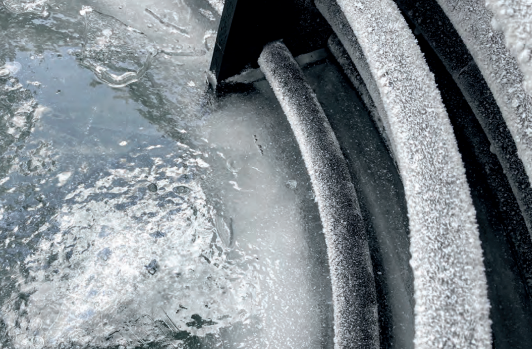 Our system uses the crystallization energy produced when water freezes into ice to generate part of the heating energy. In summer, the system can be used in reverse for pre-cooling by cooling the ice storage tank at night to cover peak loads during the day.