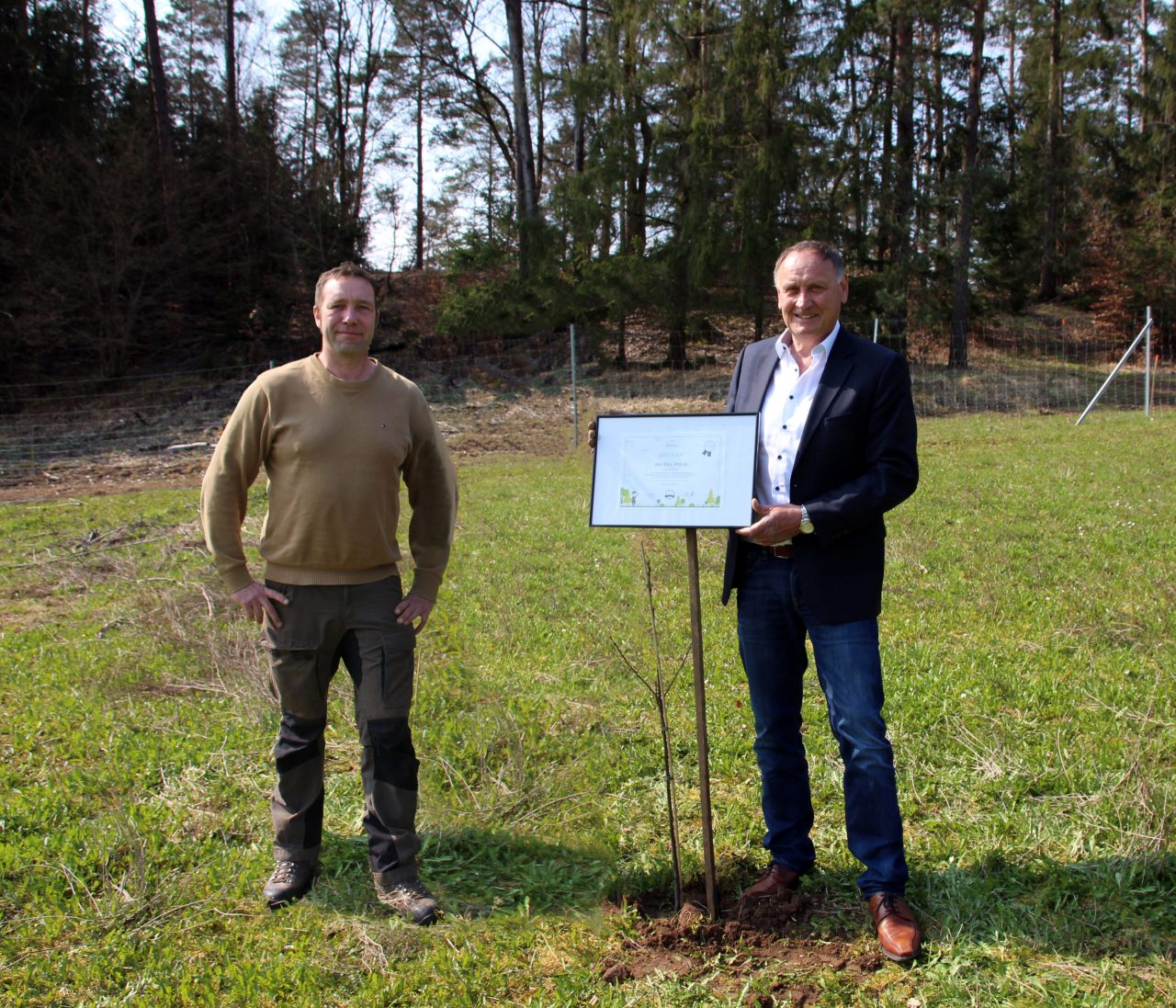 One tree was planted on a total area of 400 square meters for each of the 200 hybrid towers erected in 2020. Each individual tree binds 258 kilograms of CO2 in its first 100 years of life alone. Josef Knitl, CEO of Max Bögl Wind AG, is delighted with this additional contribution to a green footprint.